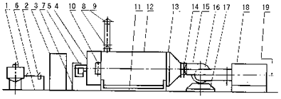 | 1.儲油槽 2.總閥濾油器 3.控制箱 4.燃燒器 5.燃燒器座 | 6.油管 7.進油管 8.雨帽 9.煙囪 10.熱風出口 | 11.機座 12.熱交換器 13.進風蓋 14.軟接管 15.接管 | 16.送風機 17.風機減振座 18.空氣過濾器 19.冷空氣進入 |