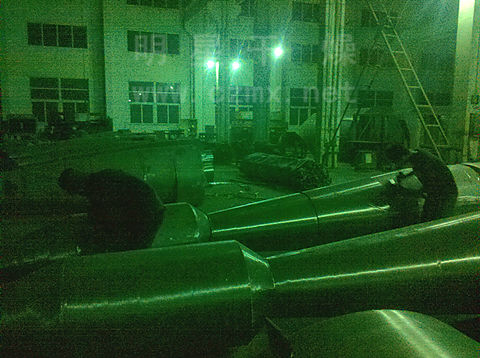 此次加工件均屬于承壓容器,所有產(chǎn)品均需射線探傷檢驗焊縫質(zhì)量。對明星公司在工藝,焊接工裝及人員方面均提出了嚴(yán)格要求。旋風(fēng)分離器制造采用8mm厚304鋼板卷制,坡口施焊,旋風(fēng)筒身全長近8m,整體直線度在3-5mm以內(nèi),同心度控制在1mm以內(nèi)。