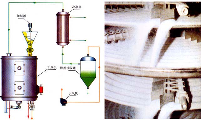 | 濕物料自加料器連續(xù)地加到干燥器上部第一層干燥盤上,帶有耙葉的耙臂作回轉(zhuǎn)運動使耙葉連續(xù)地翻抄物料。物料沿指數(shù)螺旋線渡過干燥盤表面,在小干燥盤上的物料被移送到外緣,并在外緣落到下方的大干燥盤外緣,在大干燥塔上物料向里移動并從中間落料口落入下一層小干燥盤中。大小干燥盤上下交替排列,物料得以連續(xù)地流過整個干燥器。中空的干燥盤內(nèi)通入加熱介質(zhì),加熱介質(zhì)形式有飽和蒸汽、熱水和導熱油,加熱介質(zhì)由干燥盤的一端進入,從另一端導出。已干物料從最后一層干燥盤落到殼體的底層,最后被耙葉移送到出料口排出。濕份從物料中逸出。由設在頂蓋上的排濕口排出,真空型盤式干燥器的濕氣由設在頂蓋上的真空泵抽出。從底層排出的干物料可直接包裝。通過配加翅片加熱器、溶劑回收冷凝器、袋式除塵器、干料返混木結(jié)構(gòu)、引風機等輔機,可提高其干燥的生產(chǎn)能力,干燥膏糊狀和熱敏性物料,可方便地回收溶劑,并能進行熱解和反應操作。 (一)調(diào)控容易、適用性強 通過調(diào)整料層厚度、主軸轉(zhuǎn)速、耙臂數(shù)量、耙葉型蕘尺寸可使干燥過程達到最佳。 每層干燥盤皆可單獨通入熱介質(zhì)或冷介質(zhì),對物料進行加熱或冷卻,物料溫度控制準確、容易。 物料的停留時間可以精確調(diào)整。 物料流向單一、無返混現(xiàn)象,干燥均勻,質(zhì)量穩(wěn)定,不需要混合。 (二)操作簡單、容易 干燥器的開車、停車操作非常簡單。 停止進料后,傳送物料垢耙葉能很快地排空干燥器內(nèi)的物料。 通過特殊性的大規(guī)格檢視門的視鏡,可以對設備內(nèi)進行很仔細的清洗和觀察。 (三)能耗低 料層很薄,主軸轉(zhuǎn)速低,物料供關(guān)這系統(tǒng)需要的功率小,電耗少。 以傳導熱進行干燥,熱效率高,能量消耗低。 (四)操作環(huán)境好,可回收溶劑,粉塵排放符合要求 常壓型:由于設備內(nèi)氣流速度低,而且設備內(nèi)濕度頒布上高下低,粉塵很難浮到設備頂部,所以頂部排溫口排出的尾氣的尾氣中幾乎不含有粉塵。 密閉型:配備黨溶劑回收裝置,可方便地回收載濕氣體中的有機溶劑。溶劑回收裝置簡單,回收率謝,對于易燃、易爆、有毒和易氧化的物料,可用氮氣作為載濕氣體進行半路循環(huán),使之安全操作。特別適用于易燃、易爆、有毒物料的干燥。 (五)安裝方便、占地面積小 干燥器整體出廠,整體運輸,只需吊裝就位,安裝定位非常容易。 由于干燥盤層立式布置,立式安裝,既使干燥面積很大,占地面積也很小。 |